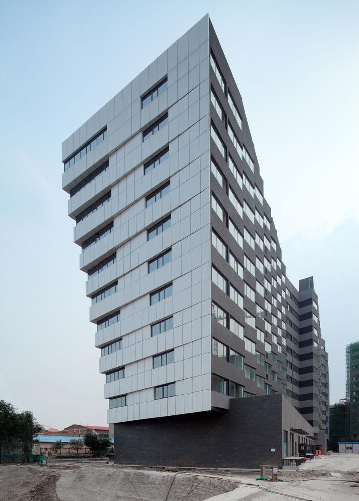 隨著過(guò)去十來(lái)年中國(guó)當(dāng)代藝術(shù)的升溫,年輕藝術(shù)家和各種與藝術(shù)相關(guān)的產(chǎn)業(yè)近幾年不斷涌入宋莊。當(dāng)?shù)卦鷳B(tài)村民的小院除了農(nóng)民自住以外,大部分已被租賃,并呈現(xiàn)短缺。原生態(tài)村落、藝術(shù)家、藝術(shù)產(chǎn)業(yè)和自由小商業(yè)之間的相互碰撞,以及外來(lái)人口的膨脹不可避免地帶來(lái)建筑密度的增加。在這種情形下,中小面積的公寓、工作室、展廳和小商業(yè)的集合體成為一種自然生長(zhǎng)出來(lái)的、適合當(dāng)?shù)匦枨蟮慕ㄔO(shè)模式。與政府統(tǒng)一開發(fā)不同,宋莊特定的地域文化特征使得一棟建筑的建造通常由幾方集資,建成后共同經(jīng)營(yíng)。東潤(rùn)公寓就是這樣一個(gè)集合體,它的設(shè)計(jì)體現(xiàn)出建筑的內(nèi)在成因和經(jīng)營(yíng)模式,是對(duì)當(dāng)?shù)靥囟ㄎ幕h(huán)境的映射。它位于宋莊最主要道路一側(cè),十字環(huán)島的東北角?;貣|西長(zhǎng)110米,南北進(jìn)深20米。