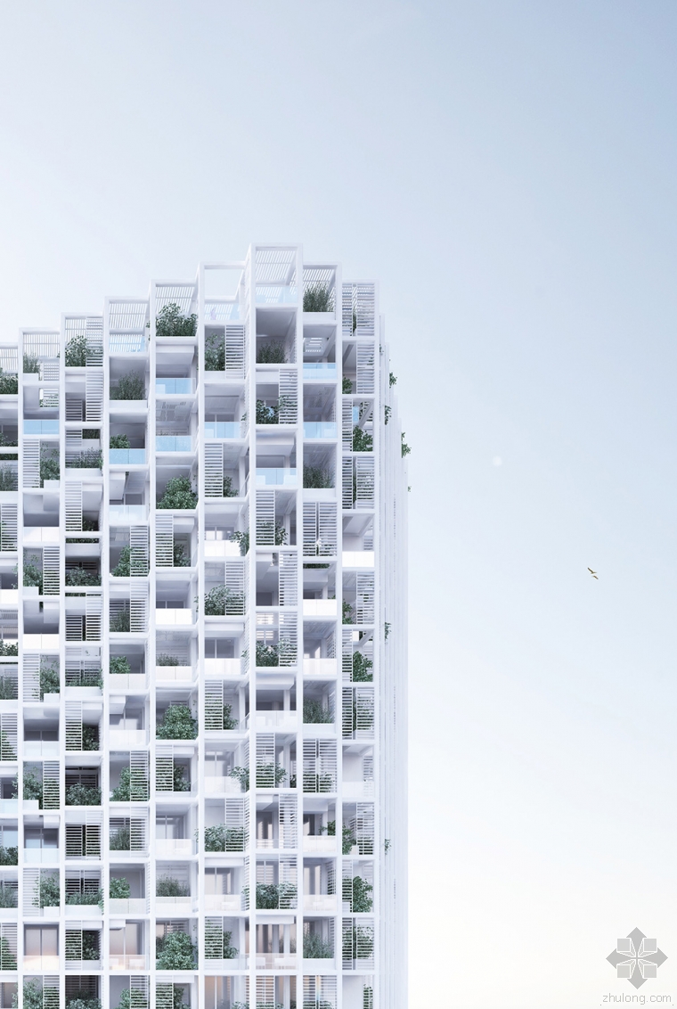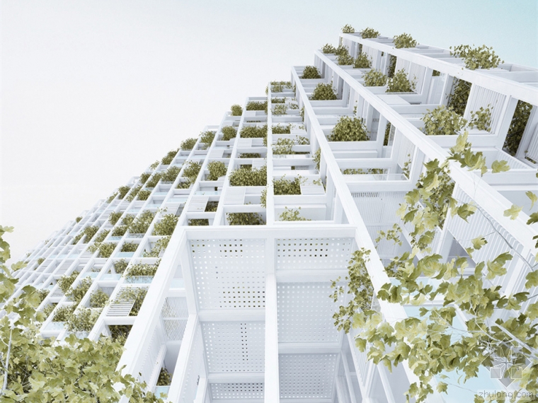 penda首先將一棟建筑中的必要元素——結(jié)構(gòu)、墻體、外立面、天花、地面、基礎(chǔ)設(shè)施、陽臺和景觀等要素從傳統(tǒng)的整體思維中分解出來。然后從一個模塊化的格構(gòu)系統(tǒng)獲得靈感,在新的格構(gòu)系統(tǒng)中只有網(wǎng)格結(jié)構(gòu)和基礎(chǔ)設(shè)施是固定的部分。而其他的要素都可以通過工廠預(yù)制進行模塊化加工。這些模塊可以為客戶提供一份目錄,業(yè)主可從產(chǎn)品目錄中選取這些模塊。模塊范圍包括不同的地面單元、外立面單元、欄桿陽臺以及供植物生長的豐富多樣的花盆等??蛻艨梢匀我膺x擇符合他們自己品位的元素進行搭配。penda希望為業(yè)主提供的是一個工具,使他們成為自己公寓的設(shè)計者。