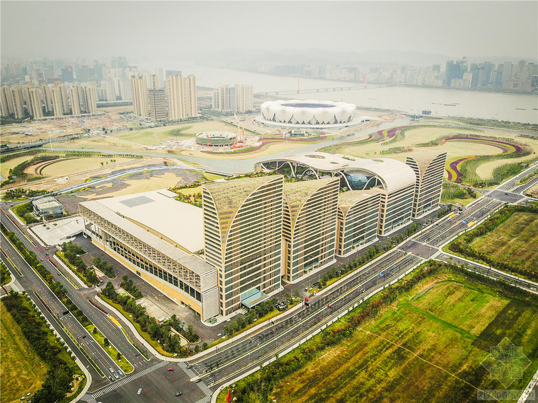 杭州國際博覽中心,位于杭州錢塘江畔,造型大氣而細(xì)膩,富于“江南意蘊(yùn)”,是迄今為止中國乃至世界最大,最先進(jìn)的超大型城市綜合體。杭州國際博覽中心總占地面積19.7公頃,總建筑面積85萬平方米,主體建筑由地上5層和地下2層組成,集會議、展覽、餐飲、旅游、酒店、商業(yè)、寫字樓等多元化業(yè)態(tài)為一體。內(nèi)部共有五大核心功能,分別為:會議區(qū)、展覽區(qū)、辦公區(qū)、酒店區(qū)、配套服務(wù)區(qū)以及復(fù)雜的交通系統(tǒng)。