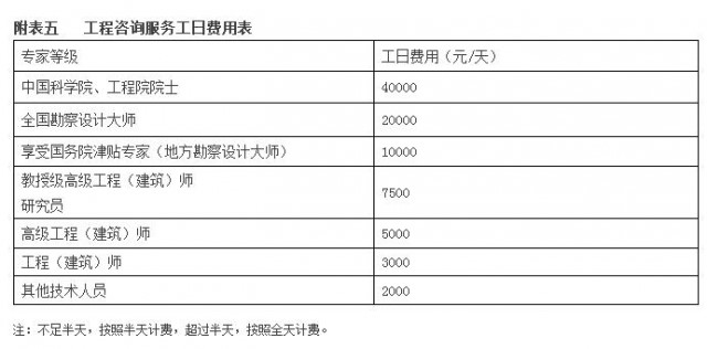 注1:專家等級相應(yīng)工日費用詳見附表五《工程咨詢服務(wù)工日費用表》