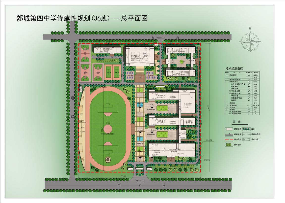 學(xué)校位于郯城縣,學(xué)校總建筑面積為27950平方米,設(shè)計人員根據(jù)功能把不同功能的建筑物放到不同區(qū)域,然后再把不同單體安照建筑美學(xué)重新排列,總共分成4個區(qū)域。每個區(qū)域排列著相應(yīng)單體,教學(xué)區(qū)域排列兩棟教學(xué)樓和一座科技實驗綜合樓,三個單體之間用連廊鏈接。生活區(qū)把男女宿舍樓放在最東邊,并把教師周轉(zhuǎn)房放到西邊,在男女宿舍樓與教師周轉(zhuǎn)房之間放一座綜合樓,這樣綜合樓面對大門口,使得之間的開拓出來一條知識長廊大道。讓進(jìn)入學(xué)校后感受到進(jìn)入到了知識的海洋。最西邊活動區(qū)排列了操場及籃球場。讓學(xué)生們在課余時間能有足夠的活動空間。