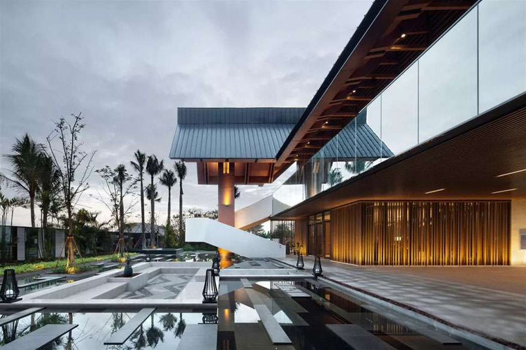 在設(shè)計中,我們往往需要同時照顧兩個相反的原則,在控制的同時釋放,在放下的時候提起,在前進的時候后退,在延續(xù)的同時打破。在當(dāng)下大部分啟動區(qū)氣質(zhì)趨向于統(tǒng)一的時候,如何通過傳統(tǒng)文化和現(xiàn)代美學(xué)的結(jié)合,打造出“不堆疊符號、不單調(diào)重復(fù)”的建筑形式,將是一個被廣泛討論的命題。我們希望找到一種方式,在設(shè)計中真正能做到在大的同時小一點,在輕的同時重一點,在深的同時淺一點,在傳統(tǒng)的同時現(xiàn)代一點,因為所有的元素都能最終找到一種方式共存,所有的探索本質(zhì)上都是對下一波浪潮的可愛幻想。本項目位于海南省??谑校鳛樵摰貕K的展示中心及售樓中心,本案引領(lǐng)了整個地塊的精神面貌。業(yè)主希望建筑兼顧功能與審美的需求,風(fēng)格上體現(xiàn)當(dāng)?shù)亟ㄖ厣耐瑫r,不失現(xiàn)代流行氣質(zhì)。由繁至簡,探討形體上的另一層境界;由簡至繁,感悟與理解隨之不斷升華。完整表達設(shè)計的初衷,需要靠所有人不懈的努力和互相理解,在此由衷感謝業(yè)主從項目之初到建筑落筆以來對我們的信任,和不遺余力的支持。