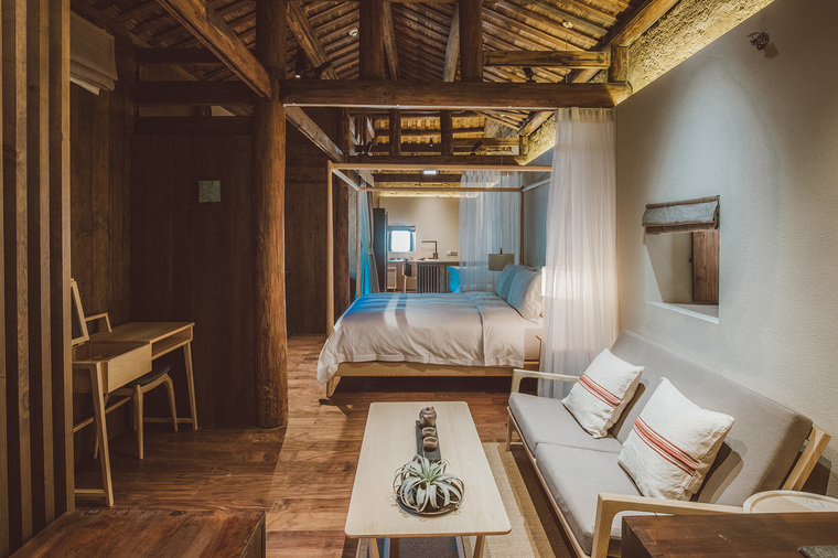 酒店內(nèi)溫馨舒適的開放空間與每棟土樓的內(nèi)部庭院相連接。這些庭院包含了餐廳、展覽空間、手工藝作坊、烹飪工作室、瑜伽工作室和兒童游樂場(chǎng)等一系列公共空間??腿藗兛梢栽诜块g內(nèi)用漳州特有的瓷器品嘗當(dāng)?shù)氐母涕俨?,或者在周圍的山間游玩探索,挖掘新鮮美味的竹筍。青普土樓文化行館的設(shè)計(jì)旨在打造一個(gè)既尊重傳統(tǒng)又啟發(fā)靈感的住宿環(huán)境。酒店提供種類豐富的餐飲,以及當(dāng)?shù)靥刂频钠【?。餐廳采用新鮮的時(shí)令蔬菜和有機(jī)食材,由本土廚師帶來地道的客家美食。文化行館的持有者王功權(quán)長(zhǎng)期致力于在酒店、金融等產(chǎn)業(yè)中推動(dòng)中國(guó)傳統(tǒng)文化的發(fā)展,并將酒店服務(wù)業(yè)的水平推向一個(gè)新的高度。