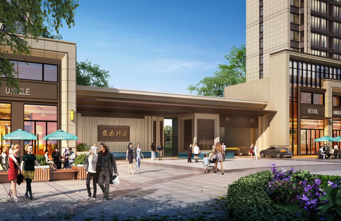 本案采用現(xiàn)代建筑風(fēng)格,以具有濃厚地域特色的傳統(tǒng)文化為根基,融入西方文化,把亞洲元素植入到現(xiàn)代建筑語系,將傳統(tǒng)意境和現(xiàn)代風(fēng)格對(duì)稱運(yùn)用,用現(xiàn)代設(shè)計(jì)來隱喻中國(guó)傳統(tǒng)。結(jié)合周邊建筑的特點(diǎn),設(shè)計(jì)為整體稍偏暖色調(diào),外立面采用米黃色真石漆,沒有復(fù)雜體量的堆砌,只是在簡(jiǎn)單的體量上憑借精致構(gòu)件加以點(diǎn)綴。強(qiáng)調(diào)面的實(shí)體作用和玻璃的虛化作用,形成對(duì)比。商業(yè)體塊感更強(qiáng)一些,在心理感受上既給予人們質(zhì)樸、親切的感受,又結(jié)合了現(xiàn)代建筑潔凈簡(jiǎn)單的特點(diǎn)。