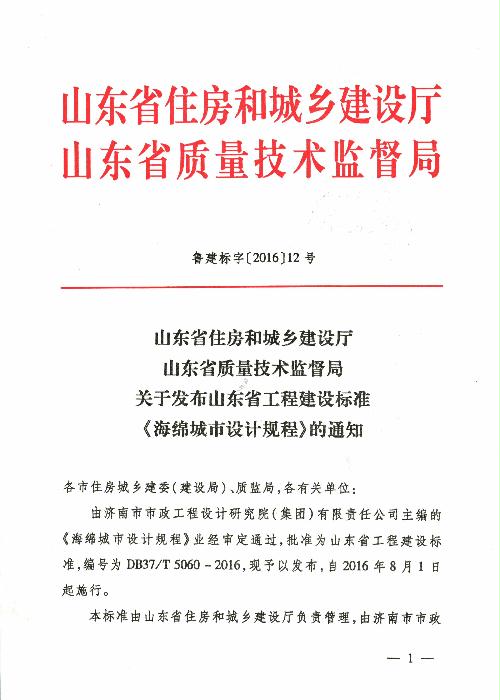 關于發(fā)布山東省工程建設標準《海綿城市設計規(guī)程》的通知